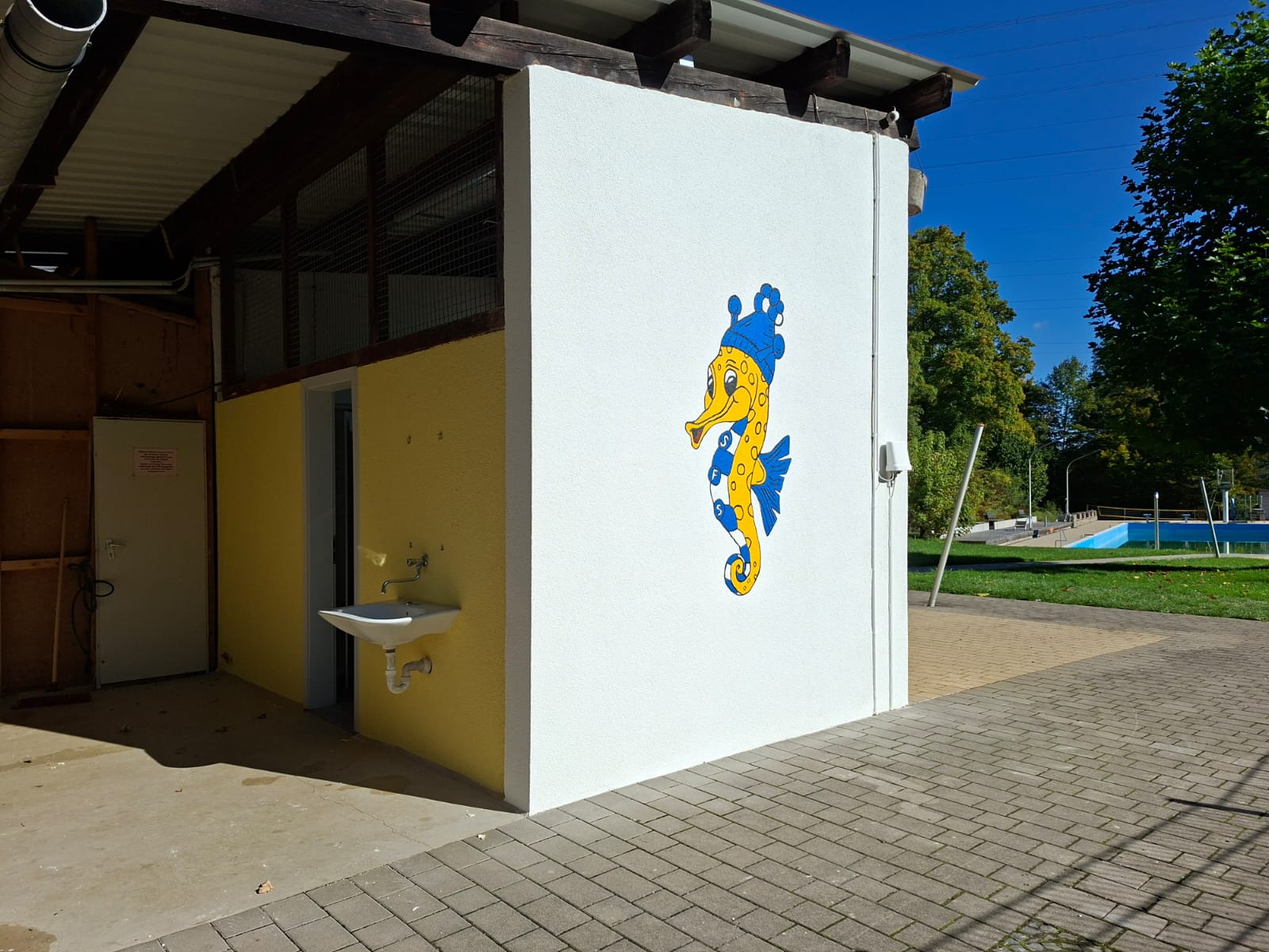 letzte Woche fand bei uns im Schwimmbad das STO-Azubi Projekt statt. Die Azubis haben die Wände am Kiosk verschönert und dem Spielhäuschen einen frischen Anstrich verpasst. Wir sind super happy über das Ergebnis ! Wie ihr seht, passiert auch in der Winterpause so einiges im Hintergrund.